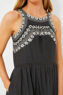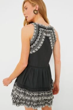 A feminine mini perfect for the warm-weather months, the Black Amina Embroidery Tank Dress boasts a tiered ruffle hem, intricate contrast borders, and a flattering A-line silhouette that can be dressed up or down depending on the occasion. Pair with espadrilles and a shoulder bag for date night, or with sandals and a tote for an everyday look.