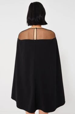 Be the star of the show in the Black Estelle Dress. Full of effortless elegance with a cape-like, swingy A-line silhouette, this darling little number gets an unexpected yet special touch from the sheer mesh upper that allows you to show off some skin while keeping it subtle. Pair with pumps and a clutch for a timeless look that’s perfect for party time!