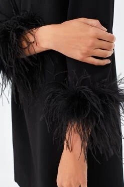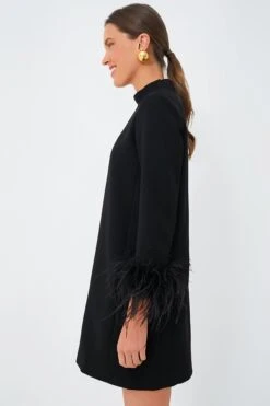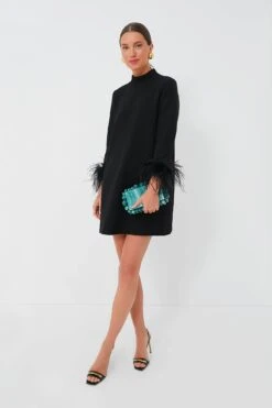 Retro glam meets modern mini with the Mod Ellie Dress. This mock neck number features a wearable silhouette that’s updated by its eye-catching details. You can’t miss the extraordinary and high quality feather embellishments on the sleeve cuffs that take this little number from breathtaking to show stopping. Perfect for glitzy gatherings and al fresco soirees, pair this beauty with pearl accessories and heels for a jaw dropping look.