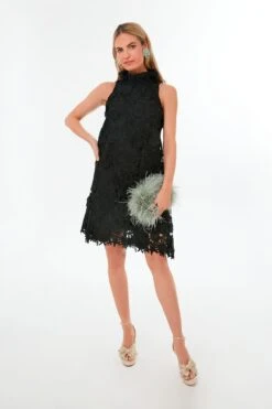 A Tuckernuck style staple, the Blythe is back and better than ever. Our design team spent months perfecting and testing our signature stand collar to get it just right. As Marvin Gaye once said: “Ain’t no collar high enough”, so bring on the ruffles and drama! Updated in a chic black guipure lace, this swing shape mini reminds us of our favorite mod dresses from the ’60s and ’70s. Ready for celebrations with family, festive parties with friends, and every social event on your calendar, the occasions are endless for this bow tie-back dress!
