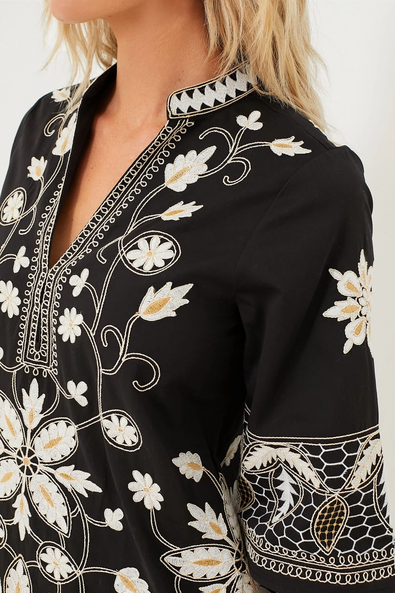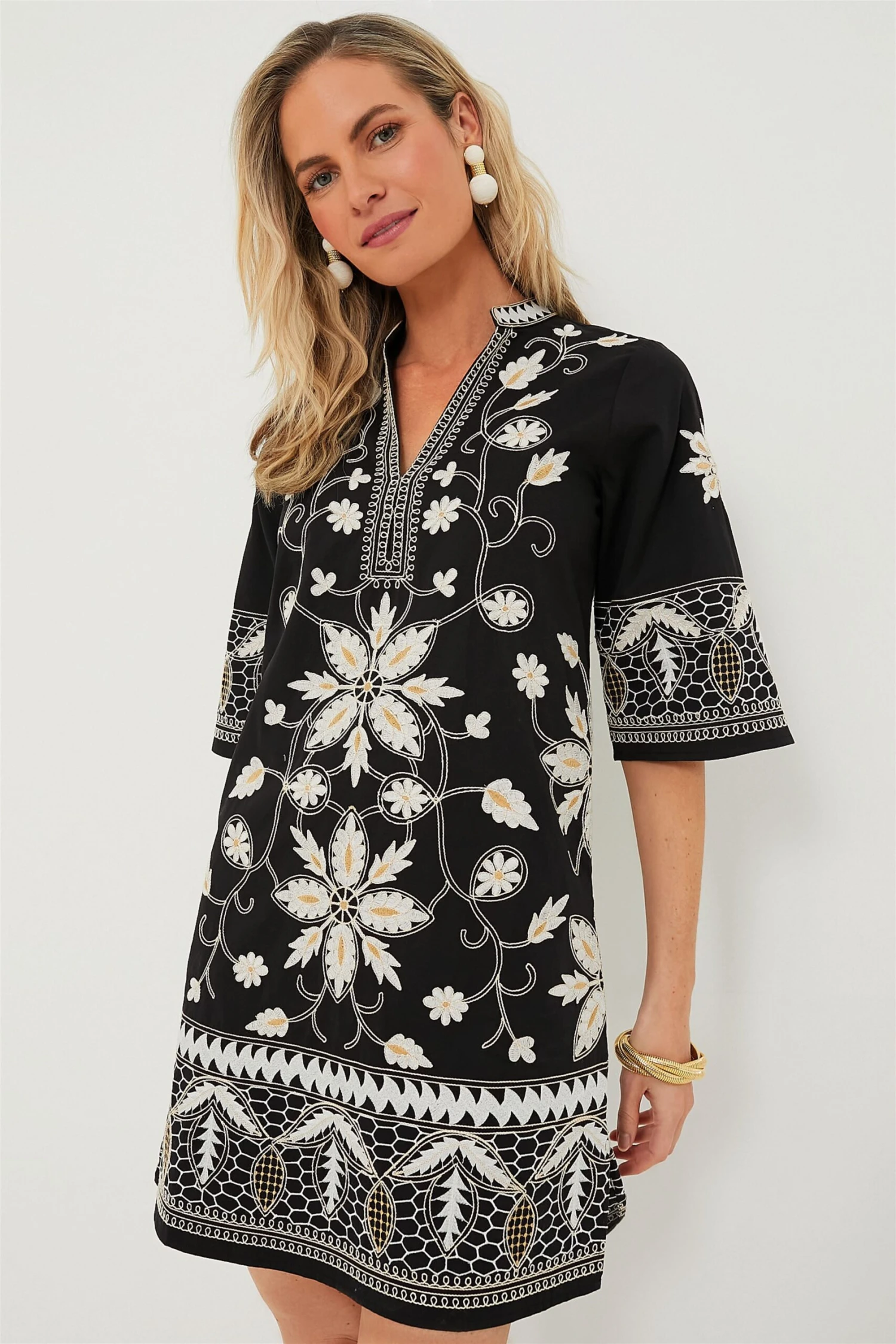 Sweet, short and sophisticated, the Black Lynne Dress does it all. Designed with floral embroidery and complete with stand collar and elbow length sleeves, this mini is a wardrobe must-have. We love wearing this stylish number to the office or to family get-togethers with gold heels and jewelry for a chic, elegant look filled with understated color!