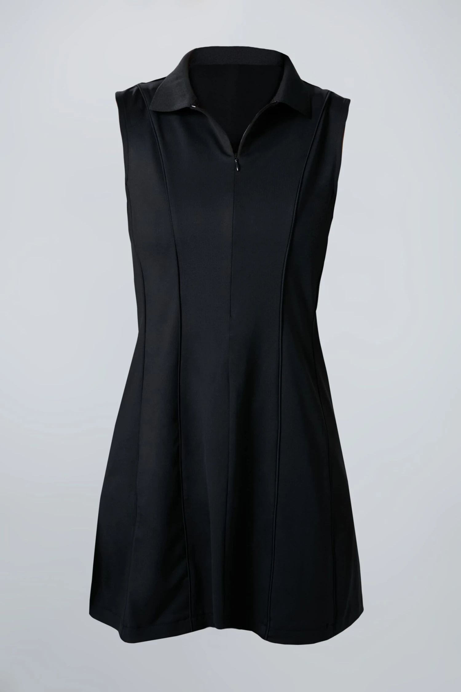 Take your beloved LBD, update it for the course, and you have the Black Roxana Half Zip Golf Dress. Designed with thoughtful functional details like the flat knit collar to provide sun protection on the back of your neck, not to mention adds a clean look for when you’re at the clubhouse. Multiple front seams enhance the fit and add an on-trend flare and the jersey knit fabric was created using superior stretch and quick-dry properties for comfort and movement when the game gets tough. Whether you’re up for some friendly competition on the links or grabbing a quick morning coffee before running errands, this performance piece will bring out your A game not matter the activity.