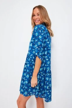 The Jacinta Deauville Dress showcases a bright and bold print in a palette of oceanic blues paired with a breezy cotton silhouette. Perfect for the days when you are manifesting warmer weather, this mini has long sleeves with button tabs to roll them up if needed, and a slightly longer back hem for a twirl-worthy silhouette. We love pairing this with white sneakers and a tote for days of exploring a new city, or with sandals and sunglasses for chilling beachside.