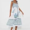 With subtly glam metallic threads running through a light printed cotton, the Bluebell Greyson Dress is a stunning option for vacation dressing. Charming details such as a deep V-neckline, a smocked waistband, and circle lace trim come together to create a fun and fresh mini that can be dressed up or down for nearly any occasion. Pair with flats and sunnies for a casual picnic, or style with heels and a clutch to elevate things for the evening.