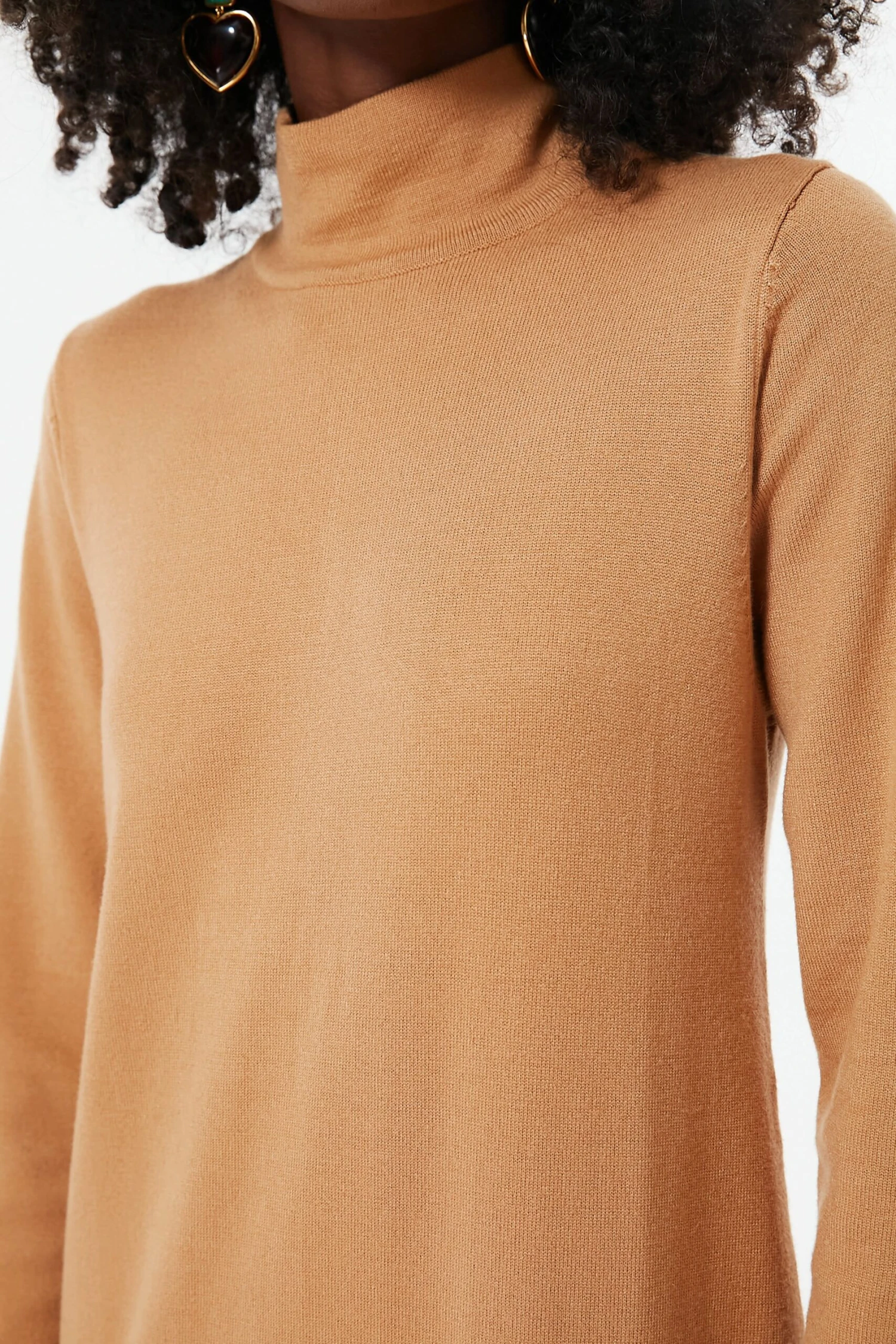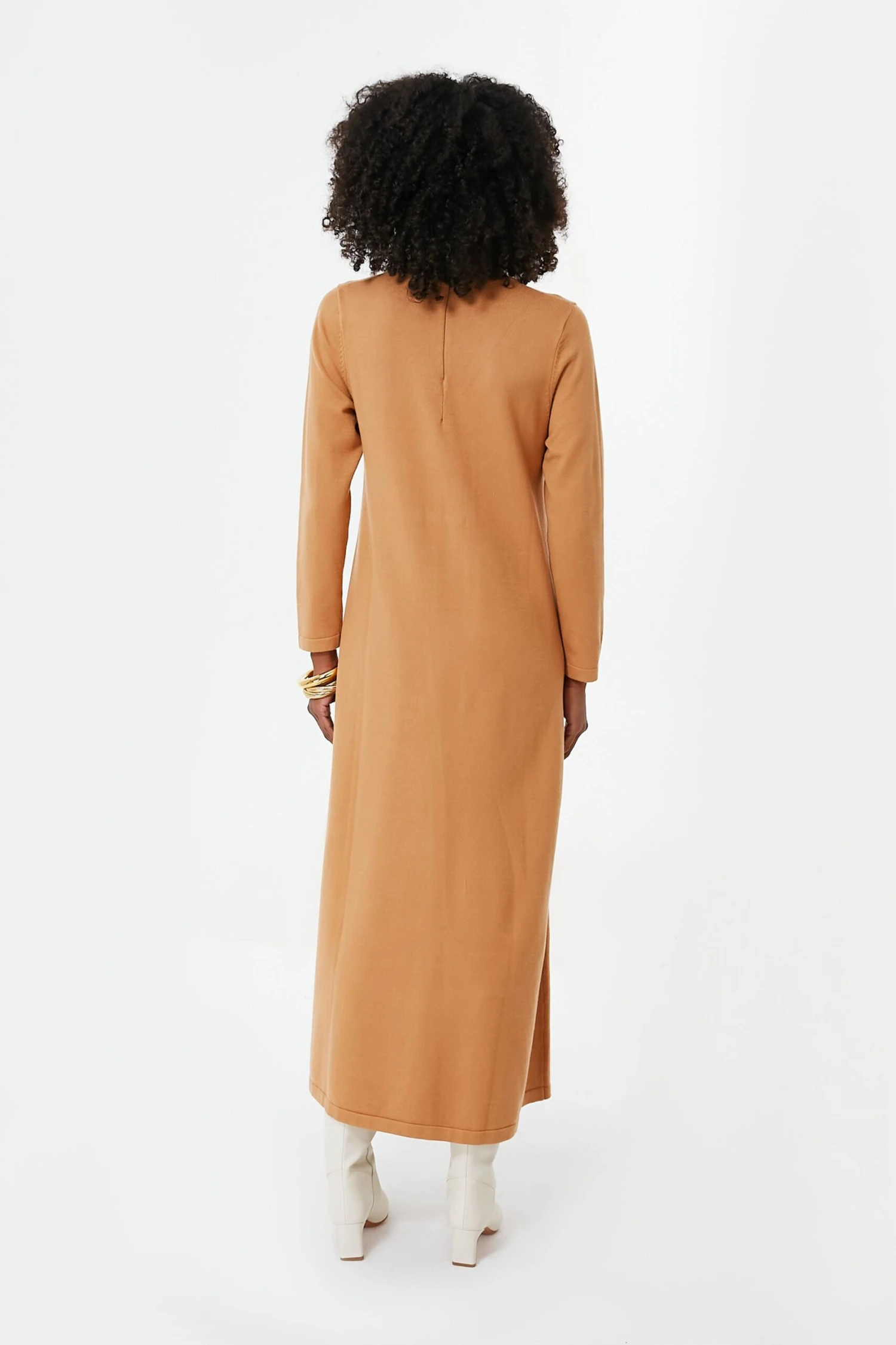 Chic understated glamour meets the Camel Ellery Dress. With a turtleneck, three-quarter length sleeves, and an A-line fit, this maxi is the epitome of elegance and class. Whether you’re window shopping or heading to your favorite restaurant with friends, pair this sweet, sweater stunner with boots and a clutch for a timeless look.