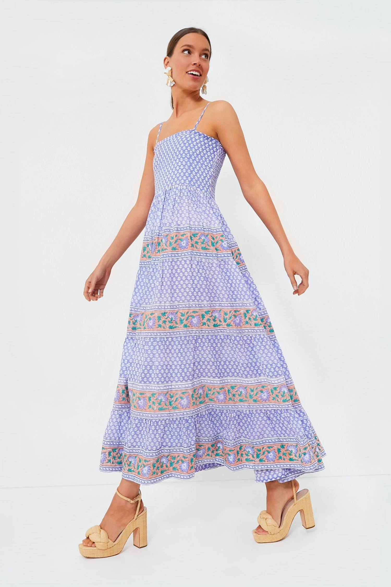Who doesn’t love a good maxi? The Campania Peri Smocked Back Dress is one you’ll be reaching for season after season thanks to that fabulous print and wearable silhouette. Featuring a flattering square neckline with adjustable spaghetti straps and a tiered skirt, this stunner checks all the boxes. Style with neutral sandals and sunnies for a sunday brunch with your gals, or elevate it with heels and statement earrings for a seaside wedding or al fresco dinner date!