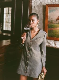 The Coventry Keira Dress is equal parts polished and glamorous, just how we like it. Done in a gorgeous metallic tweed this mini features a plunging V-neckline, long sleeves, and vintage inspired gold-buttons that add a classic finish. Add gold heels and glimmering accessories for a chic, luxe look that’s meant for dinner dates and cocktail parties.