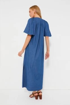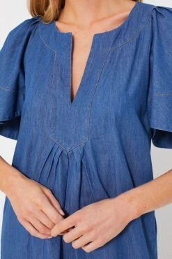 Our fan favorite Finley Flutter Sleeve Dress has been updated with Denim and we are sure that you are going to love this. In a seasonless color, this maxi has oversized flutter sleeves and a V-neckline that make it the perfect wear with anything and everything. From work to brunch, school drop-off to al fresco happy hour, there’s no occasion that the Finley can’t handle.