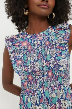Reminiscent of a summer day, the Exclusive Blue Anna’s Wild Garden Iris Dress is a playful maxi that is classy and flattering. Complete with bodice ruching, ruffle sleeves, and a tiered skirt, this style can be dressed up or down for whatever your day brings. Pair with white sneakers for a casual look, or add statement earrings and platform sandals for a more elevated ensemble.