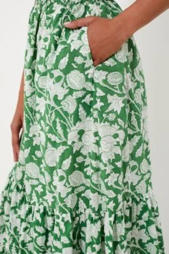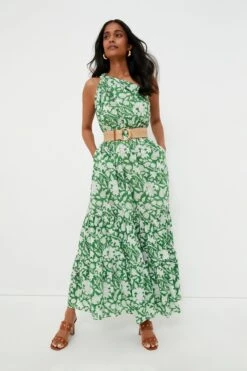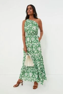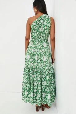 A Tuckernuck exclusive and a best-selling style, the Green Botanica Long Dress is made from a brightly block-printed cotton with a chic, asymmetrical one-shoulder silhouette. An elasticated waist provides day to night comfort, and a maxi length makes it twirl-worthy enough for dancing the night away. From sunny vacations to summer weddings, this elegant yet effortless gown is a must-have! Pair with wedges, a clutch, and plenty of gold jewelry for a look that is sure to earn you some compliments.