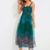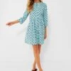 A swingy, tiered silhouette in gorgeous hues of teal with a block printed design – what’s not to like? The details say it all for the Turquoise Camilla Rene Dress, featuring elbow length sleeves, an empire waist, and a mixed pattern print for a bold, yet playful look. We are wearing this to brunches spent laughing with old pals, just add boots and gold accessories.