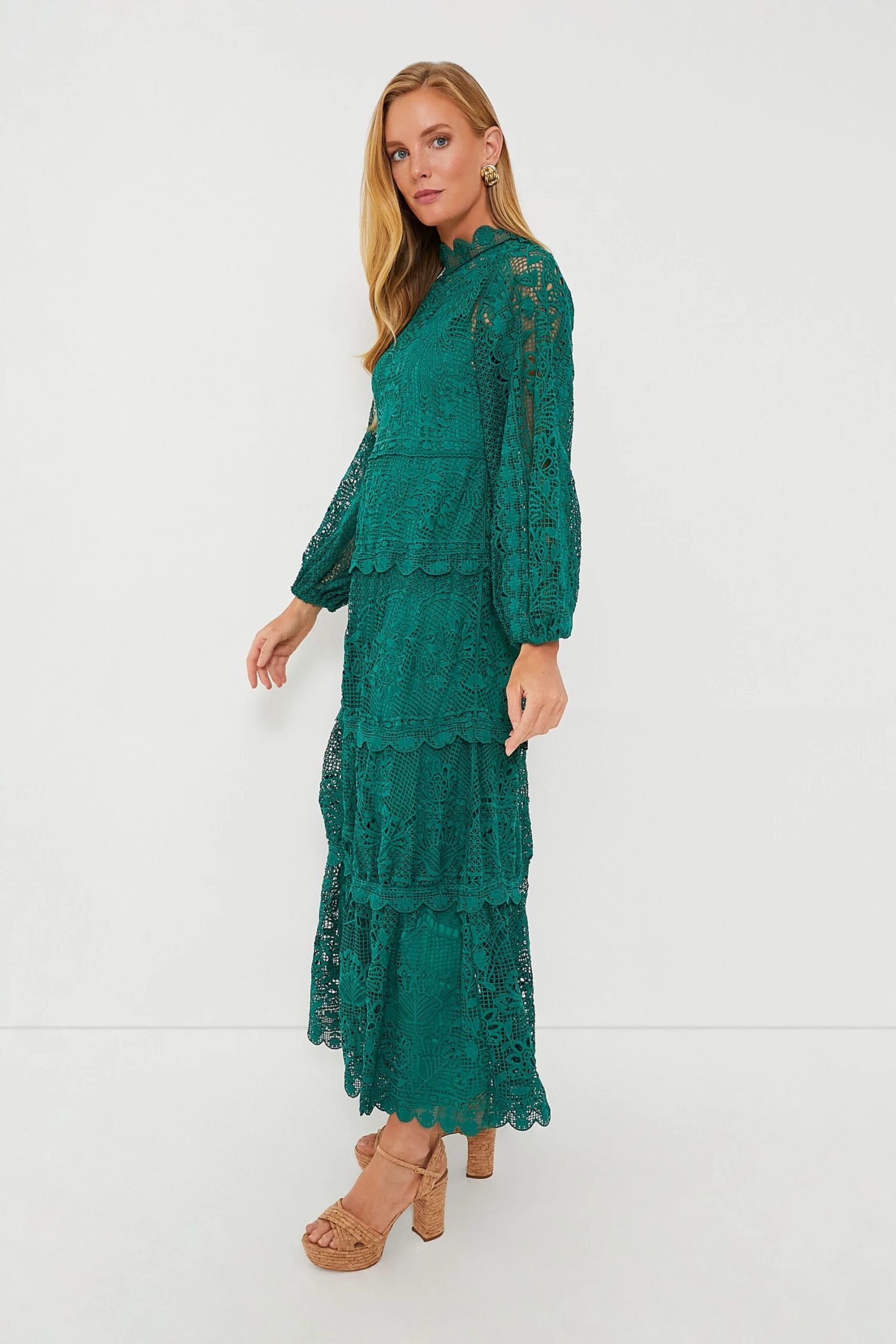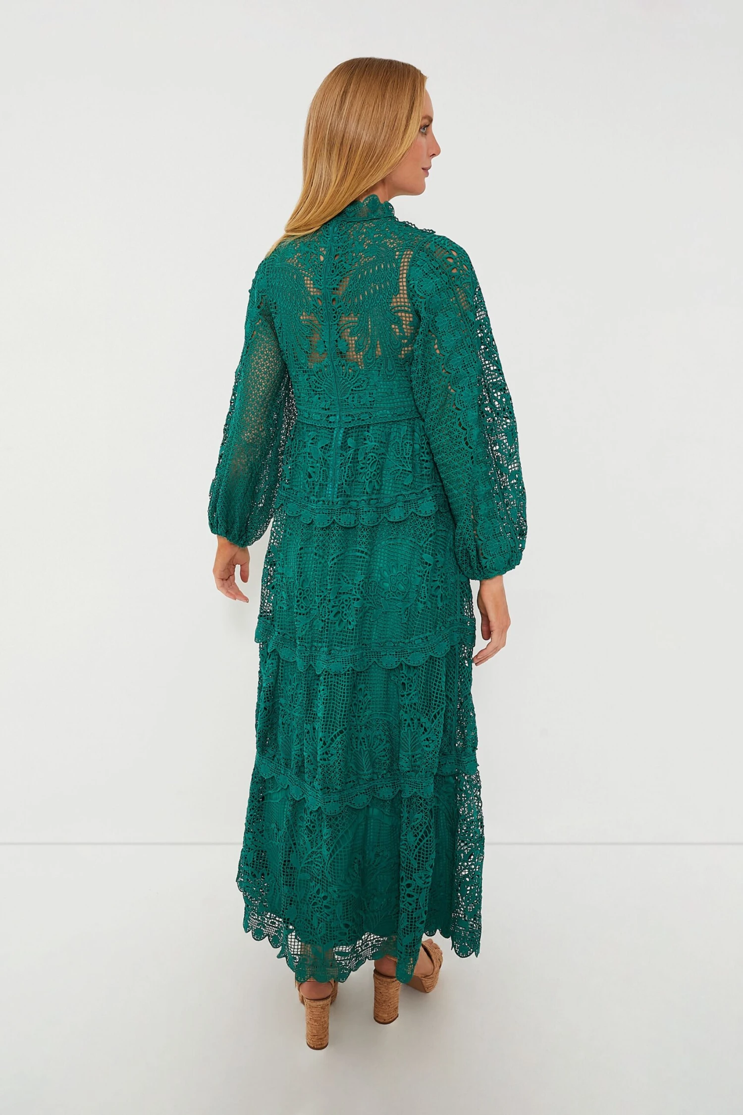 Once you fall for the Dark Green Long Sleeve Dress, you’ll always be in love! Cut from guipure lace that’s beautifully patterned with delicate flowers and scalloped along the edges, this maxi features blouson sleeves, a flowing tiered skirt and a tonal slip providing the perfect amount of coverage. Turn all moments into memorable occasions, from wedding celebrations to happy hours at the beach, just add heels or sandals for a jaw-dropping look.