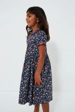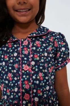 The Floral Garden Button-Front Dress is going to be your little fashionista’s favorite! Perfect for spring, summer, and can be worn into fall with tights and a cardigan, this puff sleeve number boasts a peter pan collar and button front placket that’s contrasted with punchy colored florals, pink ric rac trim, and buttons on a navy background. Perfect for family get-togethers and after school activities, your kiddo will look and feel their best in this mini!