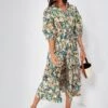 The Green Orchid Sasha Mini Dress is a Poupette St Barth classic with a vibrant fringed collar, flowing sleeves and lace trimmed at the hem. It’s trapeze shape can be adjusted with a belt for a refined look. Ideal for a carefree cool style at the beach!