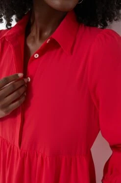 Featuring a full length, tiered skirt combined with puff sleeves in a bright vibrant red, the Hibiscus Mabel Dress is ready to quickly become a closet staple. With a collared neckline and half front placket, this effortless number evokes a sophisticated, relaxed feel. This no fuss maxi can be worn all day from school drop offs and errands to dinners with old friends, making your day a breeze with this easy silhouette. Style this neutral, yet striking number with heels and bold accessories for dinner out or dress it down with sandals for everyday activities.