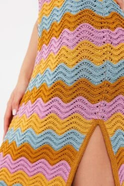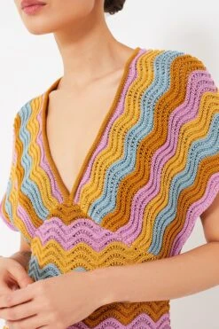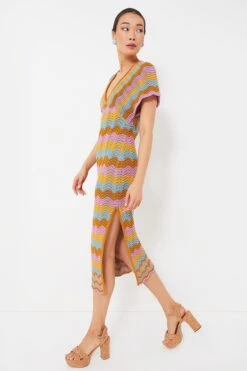 The ultimate mood-booster, the Multi Mindi Dress boasts colorful scallop stripes for a fresh and fun take on summer dressing. Made from soft cotton blend, this maxi has a deep-v neck that can be accessorized with a necklace or two, and alluring side slits gives a flattering fit to any body type. Pair with sandals and a sunhat to relax and enjoy a drink by the pool, or with sneakers and a tote for seeing the sites on vacation!
