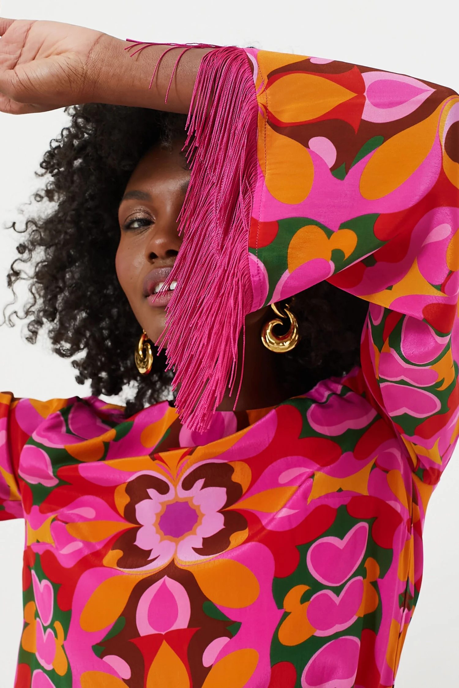If your closet has been feeling incomplete, the chic vibes of the Orange Cocoa Crepe Dress is just what you need! This true power mini is inspired by Caribbean glamor of the sixties and seventies featuring an eye-catching bold print with long sleeves and playful tassel trim. This stunner is sure to earn you some compliments. Pair with heels and sparkly jewelry to make it a memorable occasion!