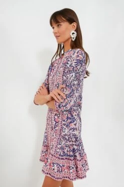 The Pink and Navy Floral Piper Dress is the flirty frock your wardrobe is missing! This cotton mini features a band collar with button front placket and a fun flutter hemline to create a style that encapsulates unfussy femininity. Style it with wedges and a tote for your next warm weather getaway!