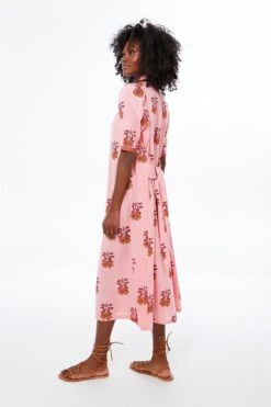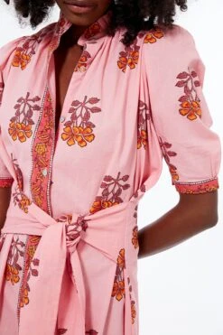 Need a pop of color to brighten up your life? The Pink Punch Remi Peony Dress does just that with its hand block printed florals and shining mother of pearl buttons. A ruffled stand collar, button front placket with a contrasting pattern, and a self-tie waist that can be tied in the front or the back all add special details to this lovely, feminine silhouette that you will treasure season after season. Style with strappy sandals and a tote for a beachside bohemian look that is absolutely perfect for those dreaming of a getaway.