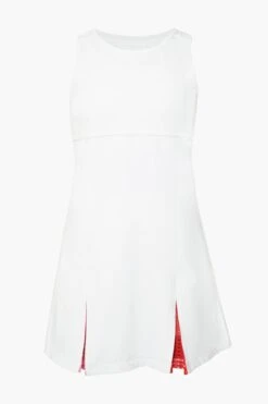 Who needs to paint the town red when you can color the court rainbow with this fun update to our fan favorite Tournament Dress! Twirl worthy with its colorful mesh skirt pleats and cane back panel for optimal cooling and cool-girl style, this “rainbow bright” take on the classic sport silhouette will have you feeling and looking like a colorful champion on and off the courts. Complete with a high rise neckline for sun protection and quick dry, soft-to-touch fabric, you are sure to radiate happiness when wearing this fun (and functional!) update to your tennis whites collection.