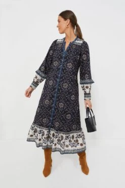 Bring effortless style to your wardrobe with the Sabina Lara Midi Dress. We love the beautiful florals on this relaxed silhouette for a boho-chic look, as well as its self-tie belt to cinch the waist, and that fabulously swingy border-printed skirt. We are pairing this piece with boots and gold accessories for the office, errands, family get-togethers, and more.
