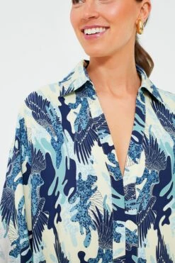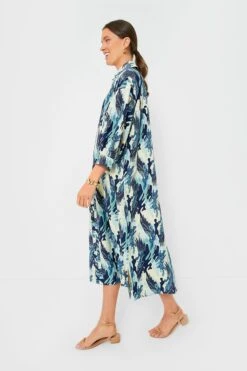 Subtle in silhouette, with a fun print, the Sloane Collared Shirt Dress is a stellar statement-maker! Crafted from a smooth silk like fabric and featuring all classic details like a crisp collar, quarter length sleeves and a front button placket, this relaxed maxi length will keep you feeling like your best breezy self. Just add sandals and a tote, this resort staple will take you from the beach to dinner and drinks.