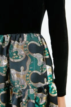 Fancy events can be a source of stress, so why make styling anything but simple? The Spritz Verde Big Dress combines the big eveningwear look of a statement skirt with the ease of throwing on a one-piece frock. This silhouette features a sleek, long-sleeved velvet bodice and flowing tiers of ankle-sweeping jacquard that come together to create a style that is unbearably chic and obviously one of a kind. Add some party pumps and a clutch, then consider your look sorted.