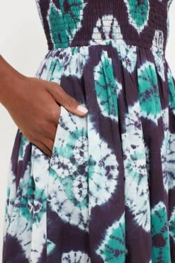 A feminine silhouette with an eye-catching pattern, we are loving the Teal Aveline Tie Dye Print Sleeveless Smocked Dress for summertime soirees and showers alike. Featuring a smocked bodice for perfect fit and ruched sleeves for a touch of drama, this midi is a perfect go-to look. Pair with espadrilles or sandals and bold jewelry for a look that will turn heads!