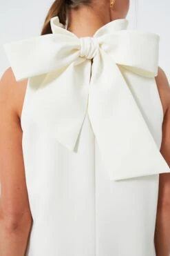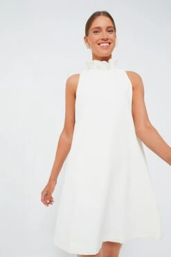 A Tuckernuck style staple, the Blythe is back and better than ever. Our design team spent months perfecting and testing our signature stand collar to get it just right. As Marvin Gaye once said: “Ain’t no collar high enough,” so bring on the ruffles and drama! Updated in a beautiful stretch crepe fabric, this swing shape mini dress reminds us of our favorite mod dresses from the 60s and 70s. Ready for al fresco dinners with family, cocktail parties with friends, and every social event on your calendar, the occasions are endless for this bow tie-back dress!